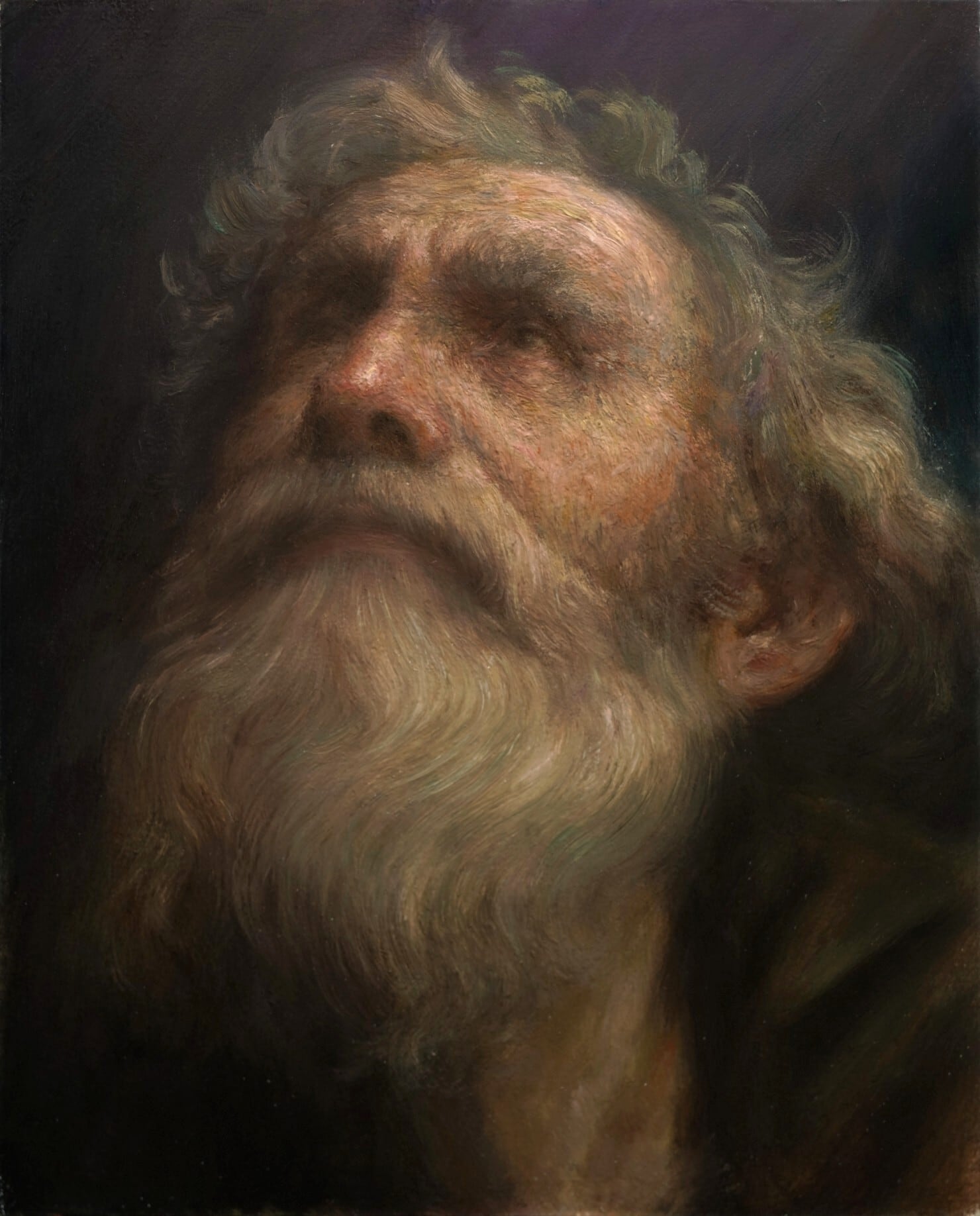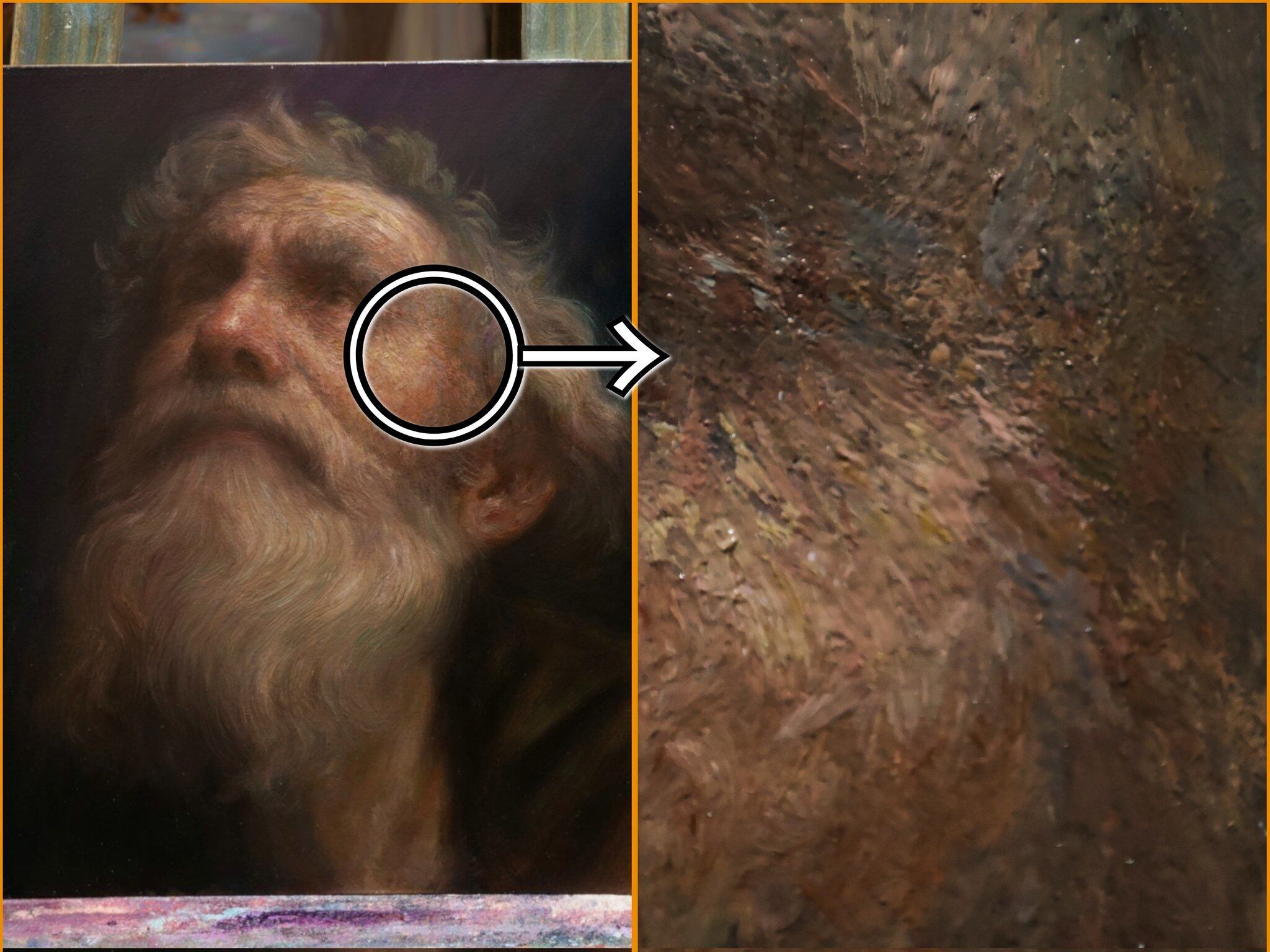 ここまで徹底的にインパストで描かれた高品質な写実人物画は歴史的にも希少です。筆遣いの複雑度を御覧ください。