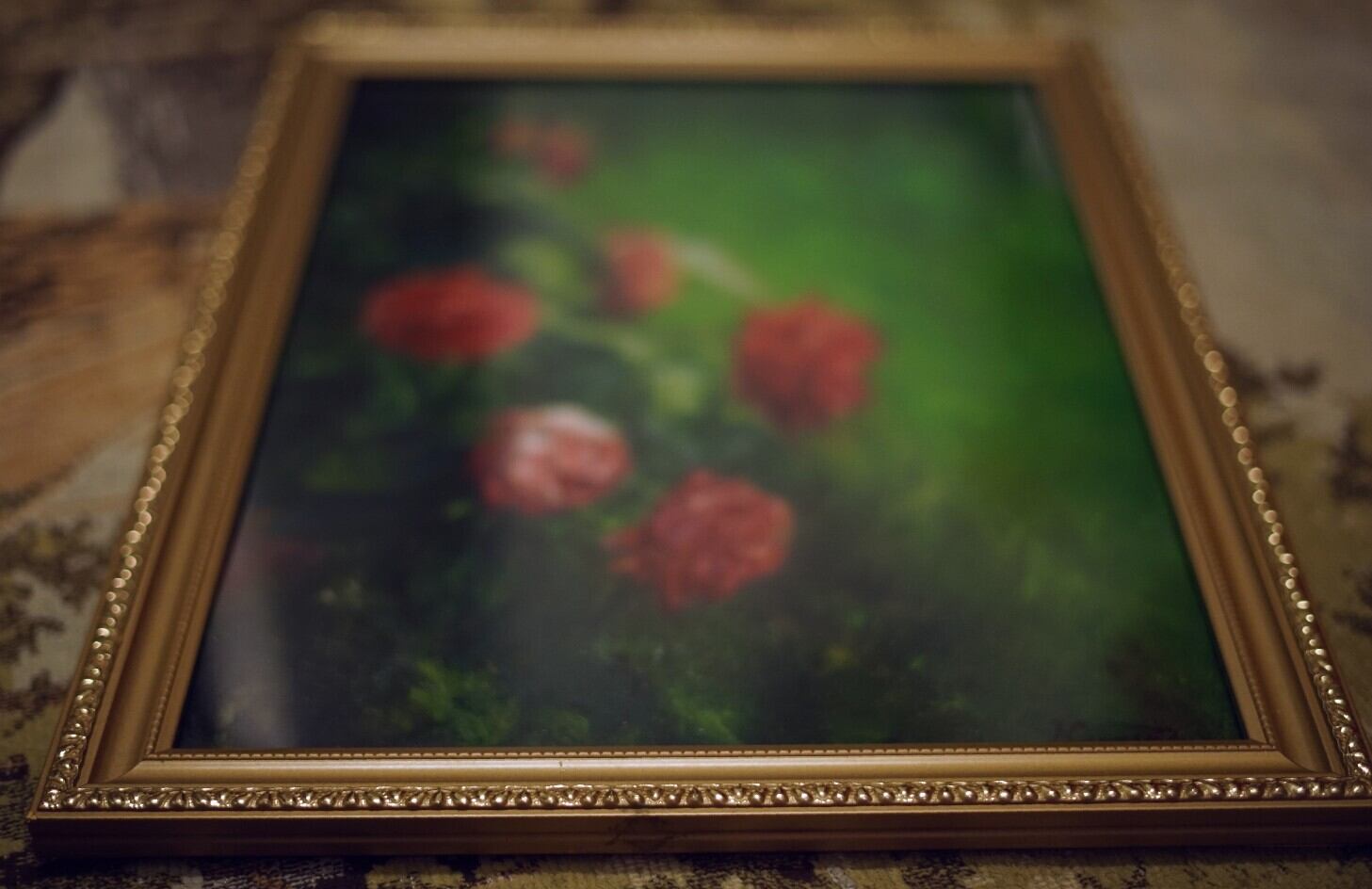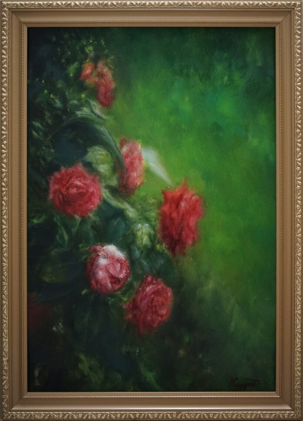 花弁や葉をはっきり一枚一枚描かずに印象を表現した作品です。